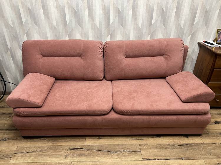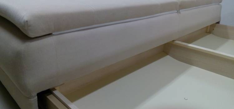 Бельевой ящик из двух секций, достаточно для двуспального комплекта белья. Спальное место 150 см в разложенном виде, 75 в сложенном, жесткость средняя, по комфорту как безпружинный матрас, кто не знает в 5 раз лучше обычных диванов. При раскладывании, складывании диван на 5 см. отходит от стены, небольшой ход есть. Все тихо, надежно и легко. В квартиру заносили то же в вертикальном положении, во все проемы диван прошёл, ничего не поломали и не поцарапали. Топпер не снимается, подушки просто кладутся на диван, не соскальзывают. По срокам, сделали за 3 дня привезли на 4-ый!! Москва! Все отлично!