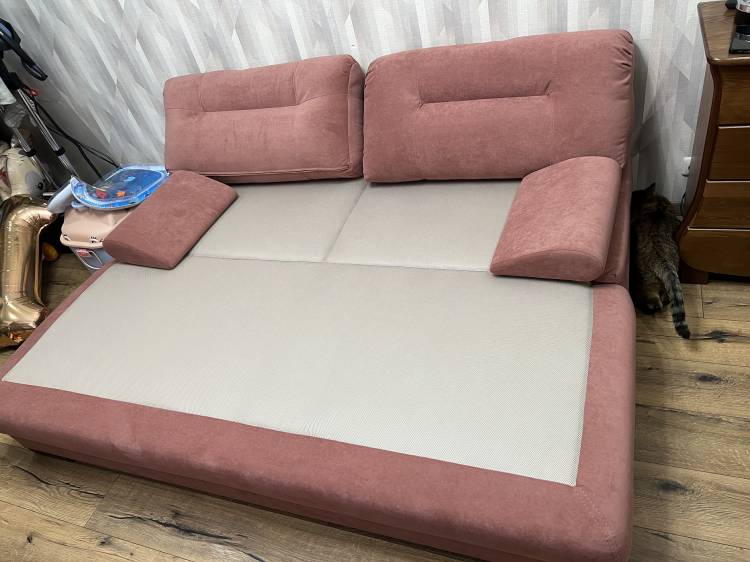 Довольны диваном. Раскладывается, становится полноценным спальным местом для двух человек. Смотрится компактно и стильно. Имеется место для хранения постельных принадлежностей. 4 подушки (на фото их нет).