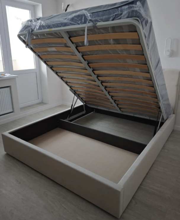 • Встроенное кроватное основание с упругими ламелями способно усилить анатомический эффект вашего матраса. Подъемный механизм позволяет использовать пространство под кроватью для хранения.