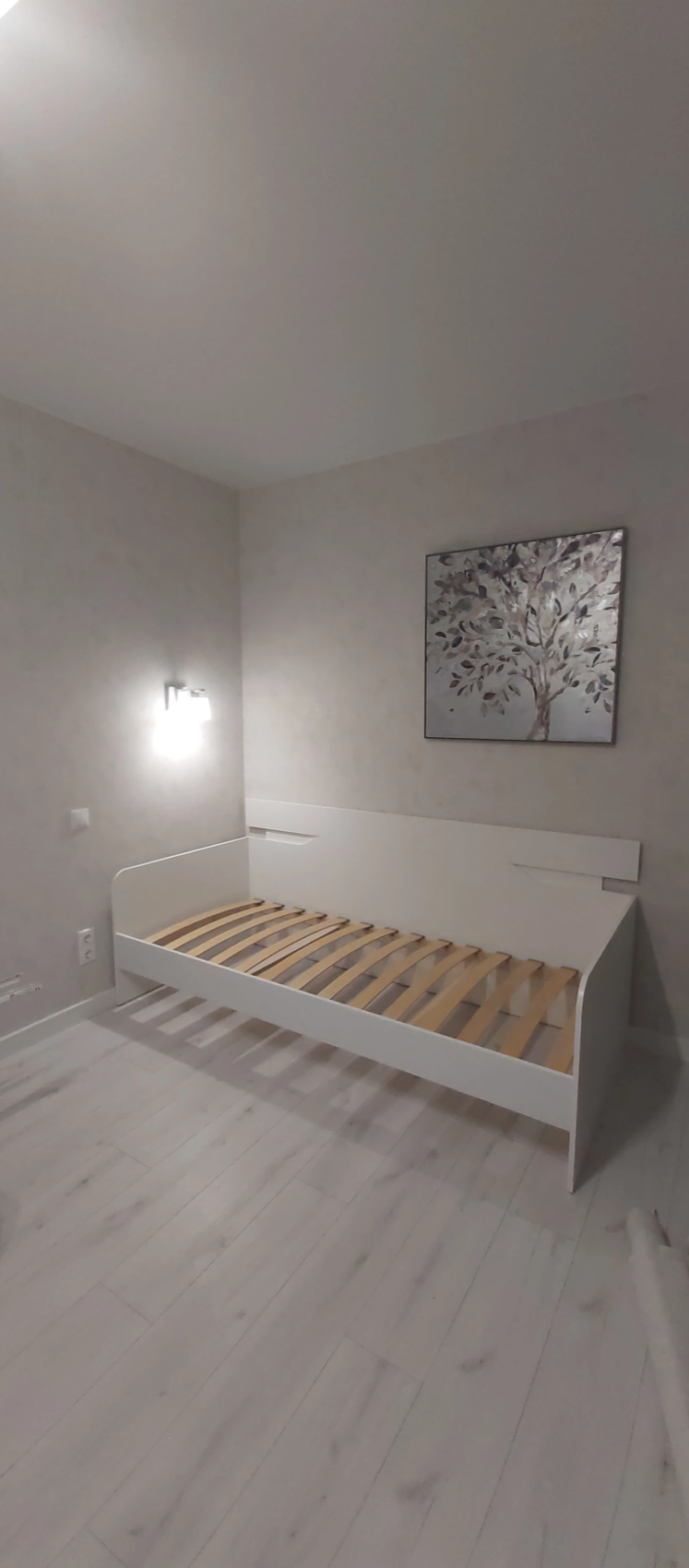 Эту кровать выбрали вместе с дочкой в качестве спального места в ее комнату. Кровать довольно компактная, но в разобранном виде это полноценная кровать. Смотрится очень стильно и современно. Мы брали в комплектации с выкатным ящиком, чтобы складывать туда вещи, но можно и без него-будет чуть дешевле. Конструкция добротная, ничего не скрипит и не шатается. Очень радует цена.