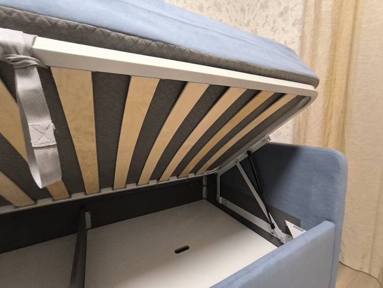 - Дополнительно можно заказать подъемный механизм и бельевой ящик, чтобы использовать место под кроватью для хранения. Дно бельевого ящика легко сдвигается для обеспечения уборки под кроватью.
