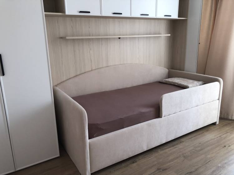 Огромное спасибо производителю за эту кровать. Красивая, удобная, вместительная и современная. Заказали кровать размером 90х190 с подъёмным механизмом и ящиками для хранения. Так же заказали матрас с чехлом под цвет кровати и декоративные подушки. Дочь в восторге