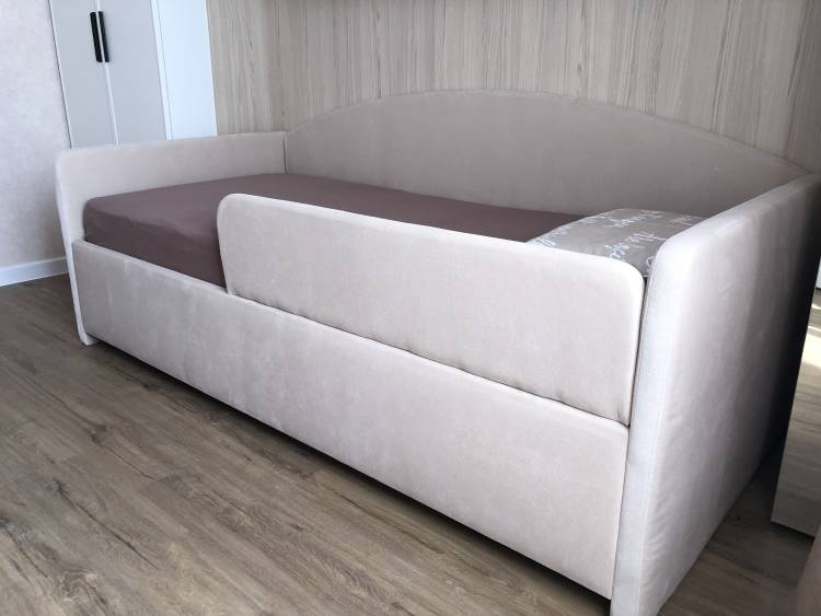 - Кровать-софа с обивкой из экокожи или мебельной ткани